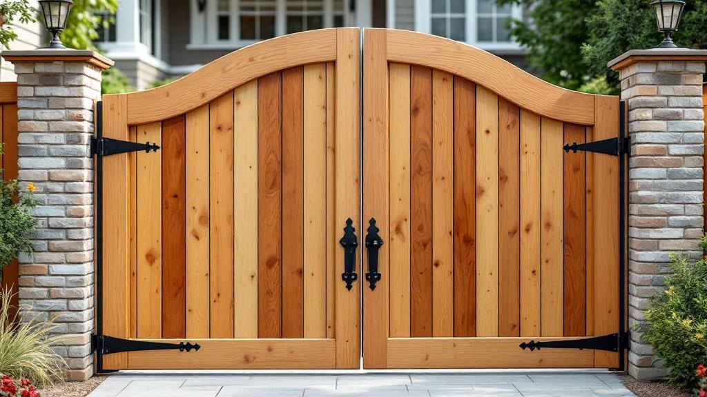 Custom Arched Wood Gate for Restaurant Properties - Professional Wood Fence by Fencing & Gates contractors
