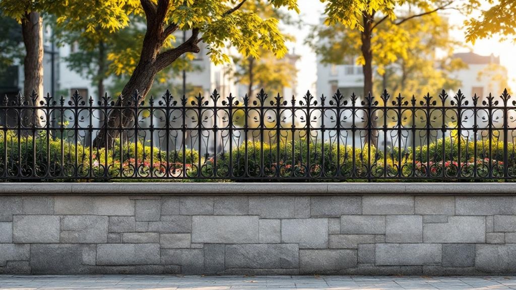 Iron Fence Stone Wall Base for Urban Properties - Professional Ornamental Iron by Fencing & Gates contractors