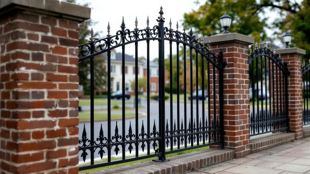 Iron Fence with Brick Columns - Residential